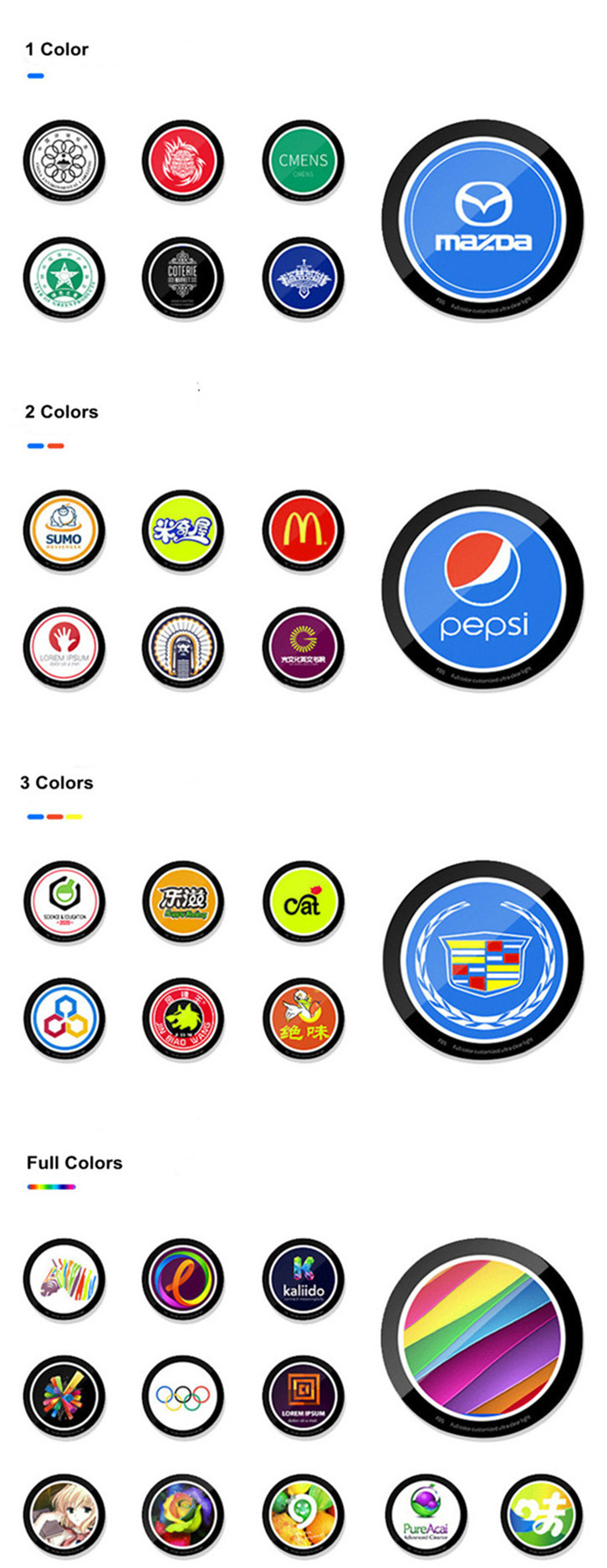 (for 1-3 color gobos, besides above color, any other colors can be made)