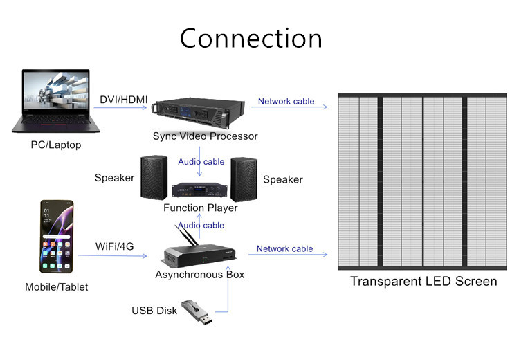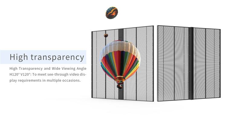 1. High transparency and wide viewing angle H120° V120°: To meet see-through video display requirements in multiple occasions.