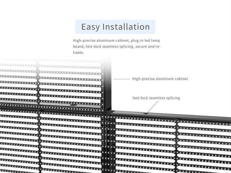 3. Easy Installation: high-precise aluminum cabinet, plug-in led lamp board, fast-lock seamless splicing, secure and reliable.
